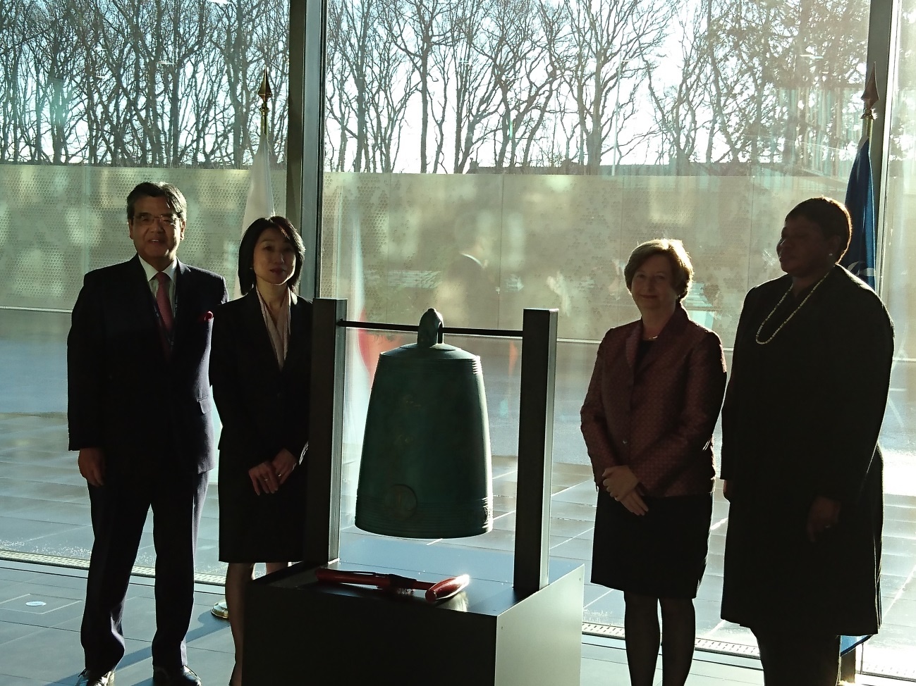 1. On January 24, the unveiling ceremony of the “Peace and Justice Bell” took place at the International Criminal Court (ICC) in The Hague, the Netherlands. The ceremony was attended by Mr. Hiroshi Inomata, Ambassador Extraordinary and Plenipotentiary of Japan to the Netherlands, and Ms. Naoko Saiki, Director-General, International Legal Affairs Bureau, Ministry of Foreign Affairs of Japan, representing the Government of Japan. Also present at the ceremony were Judge Silvia Fernández de Gurmendi, President of the ICC, Ms. Fatou Bensouda, the Prosecutor of the ICC, and other officials from the ICC.