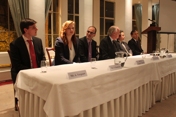 2月5日、大使公邸にて日本に関する学習者のつどいを開催し、日本語学習者、JETプログラム経験者、国費留学経験者、企業関係者等を招待しました。大使の挨拶の他、国費留学経験者、JETプログラム経験者、在蘭日本商工会議所の代表者及び蘭日貿易連盟の方々から、日本とオランダの企業環境の違いや日本企業の現状等、特に日本語学習者に参考となるスピーチをしていただきました。その後、レセプションでは参加者間の有意義な意見交換が行われました。
